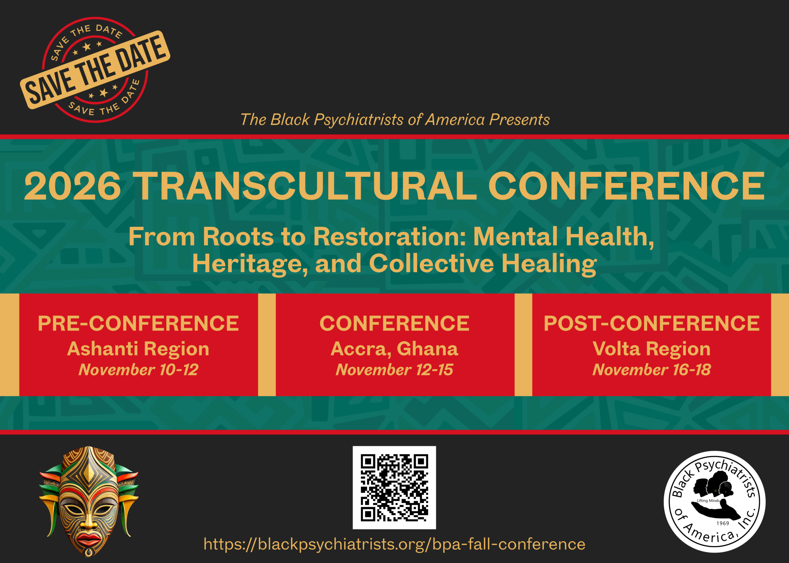 The Black Psychiatrists of America proudly announces our 2025 BPA Fall Transcultural Conference, taking place from November 6–10, 2025, in beautiful Grenada!